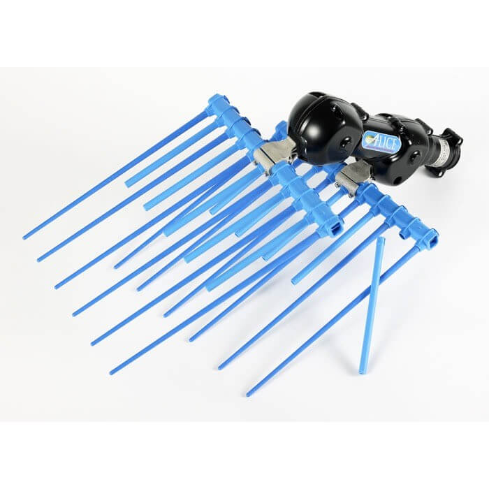 Lo scuotitore elettrico per olive Campagnola Alice Eco è lo strumento ideale per raccogliere olive in alberi con chioma folta o rami ben potati, con semplicità, potenza ed efficacia; la struttura della testa è formata da 2 elementi contrapposti in cui sono collocati 11 + 11 rebbi di misure diverse che entrano delicatamente e scuotono le olive senza danneggiarle.