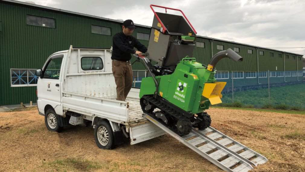 OHASHI lavora e contribuisce alla società, fornendo attrezzature per la lavorazione del legno, dei rami degli alberi e del bambù, per rendere questi rifiuti riutilizzabili.
