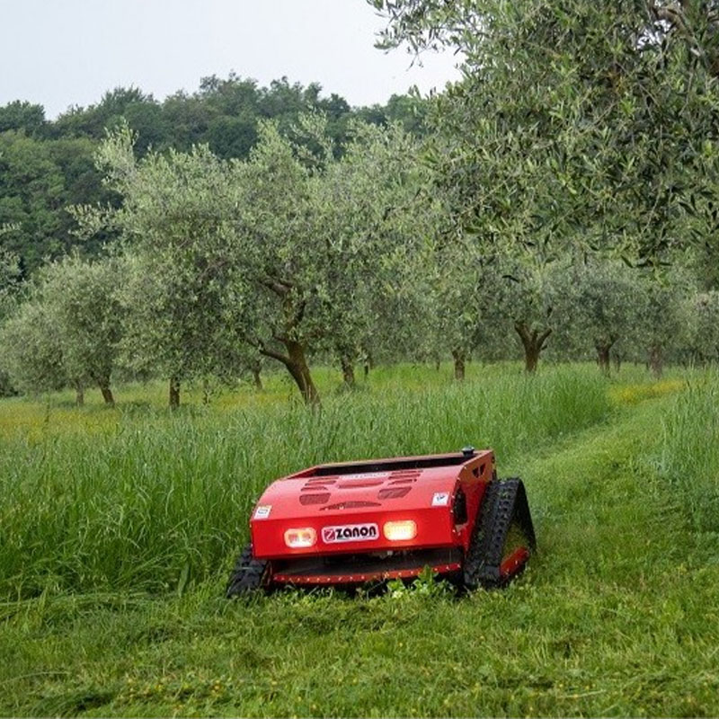 Tagliaerba radiocomandato che permette di curare la vegetazione in luoghi pericolosi, scomodi e difficilmente accessibili.